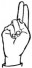 На ћирилици написано МОМИРА ВИТКОВЧАНИН састоји се из 17 слова [?]. Исписано ћириличном једноручном азбуком за глувонеме: